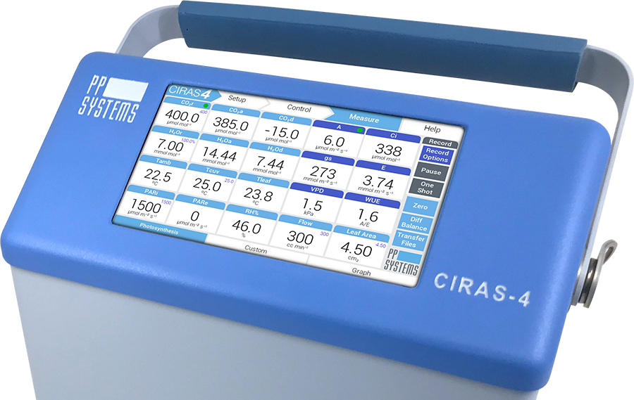 La nuova versione del CIRAS permette la misura rapida ed accurata degli scambi gassosi a livello fogliare e la misura contemporanea della fluorescenza.